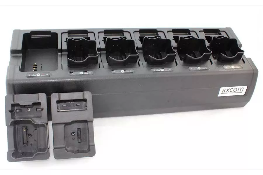 Dieses Axcom 6+6-Stationen Tischladegerät ist mit Ladeschalen für Motorola R5, R7, DP3400, DP3600, DP2400, DP2600, DP2800, DP44, DP3441 ausgestattet.