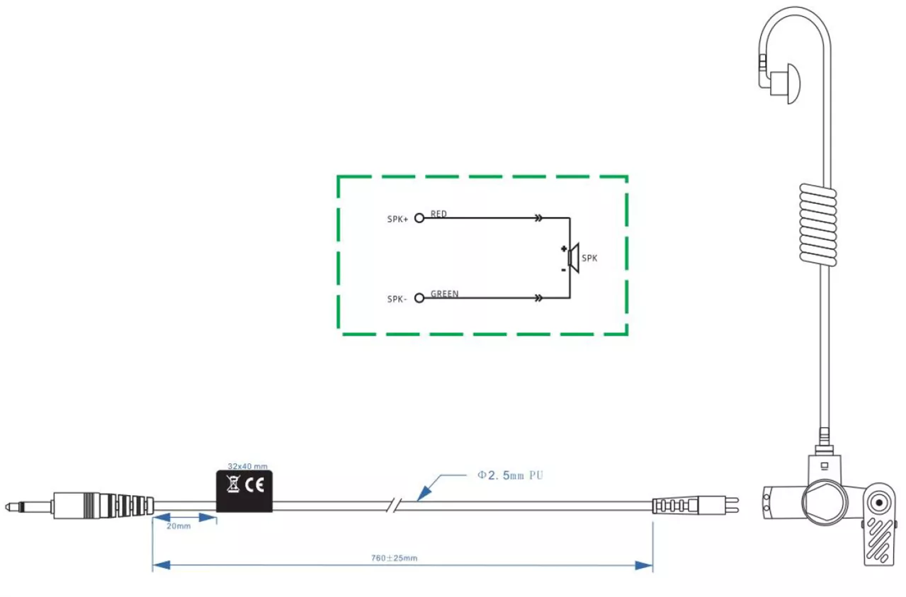 In-Ear Kopfhörer mit Bajonettanschluss, Schallschlauch/Wandlereinheit (3,5mm Klinke gerade)