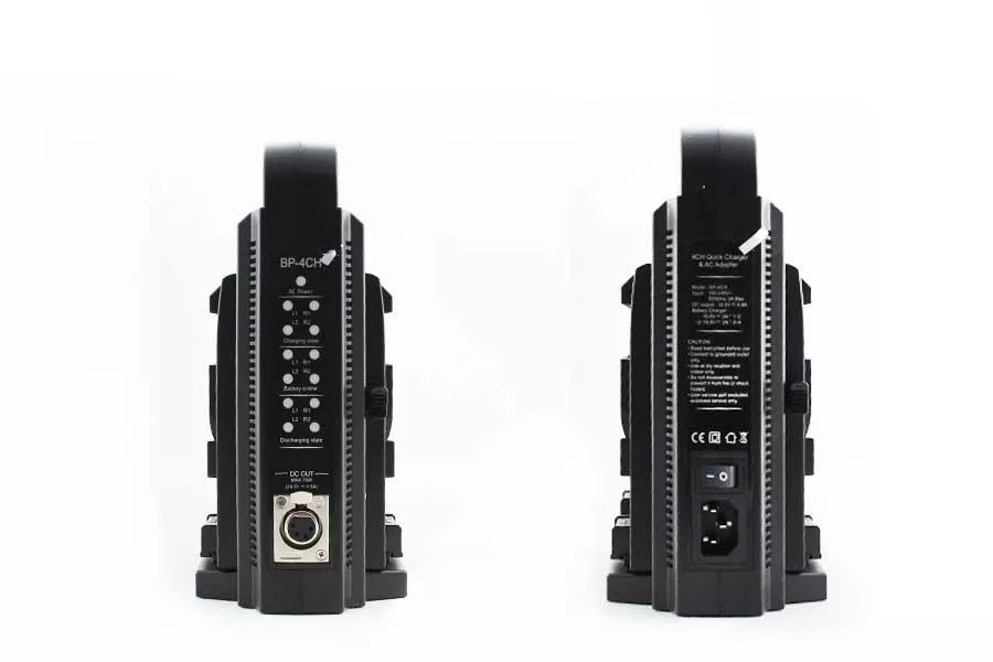 4-Kanal Ladegerät für V-Mount Akkus mit eingebautem Netzteil