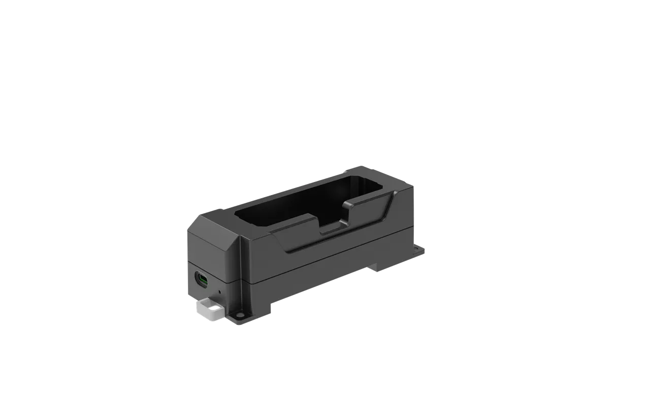 Das Ladegerät verfügt über einen USB-C Anschluss und überzeugt miteinem maßgeschneiderten, quadratischem Design für Stabilität in allen Umgebungen.