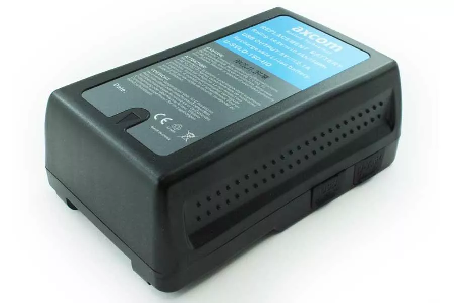 2er Pack Lithium-Ionen V-Mount Akku mit 150Wh und 2-Kanal Ladegerät mit eingebautem Netzteil.